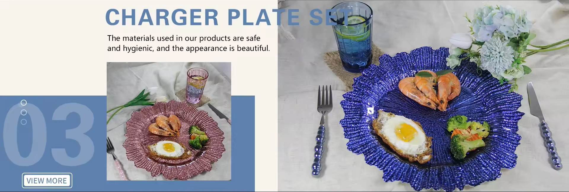 ינס מכירה חמה אופנה מותאמת אישית פנינת זכוכית צלחות צבעוניות חתונה ארוחת ערב צלחות זכוכית סט יוקרה
