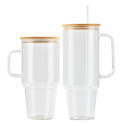 ארה "ב סין אחסון ידידותי לסביבה מוצרים ידידותיים 32 עוז 40oz גביע זכוכית סובלימציה שקוף עם מכסה ידית