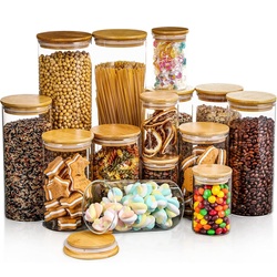 Cam gıda depolama kapaklı kavanoz mutfak aksesuarları tankı mühürlü depolama tankı bambu kapak mühürlü silindirik konteyner ile Set